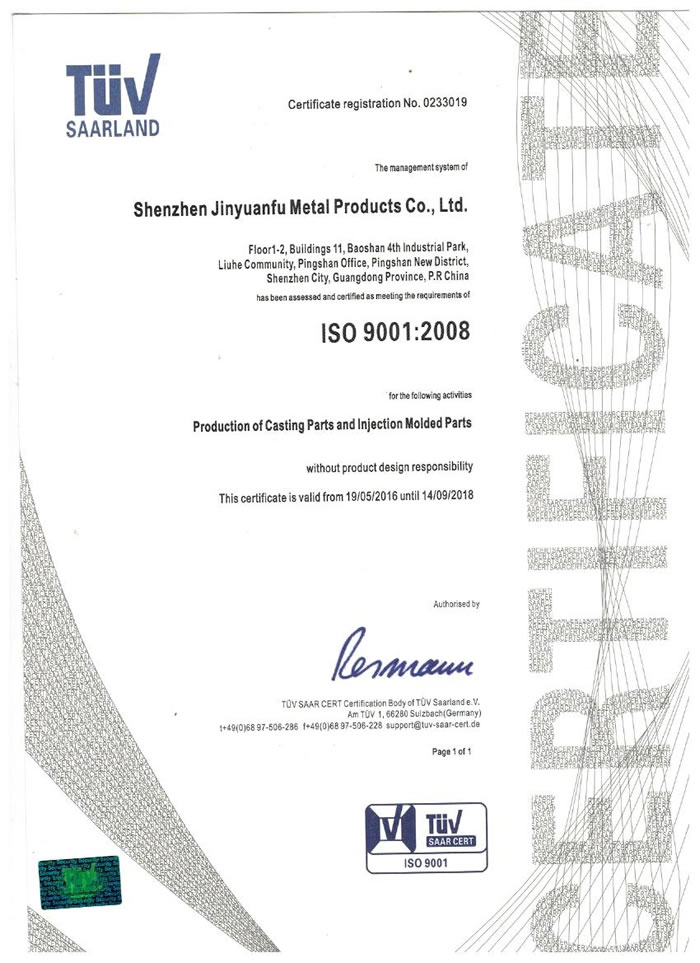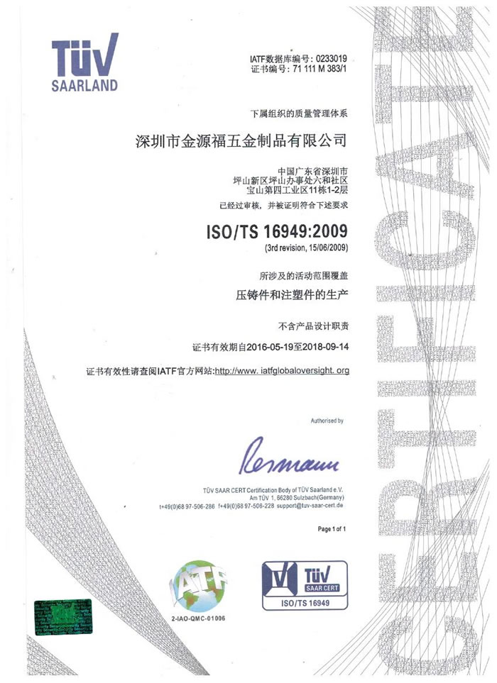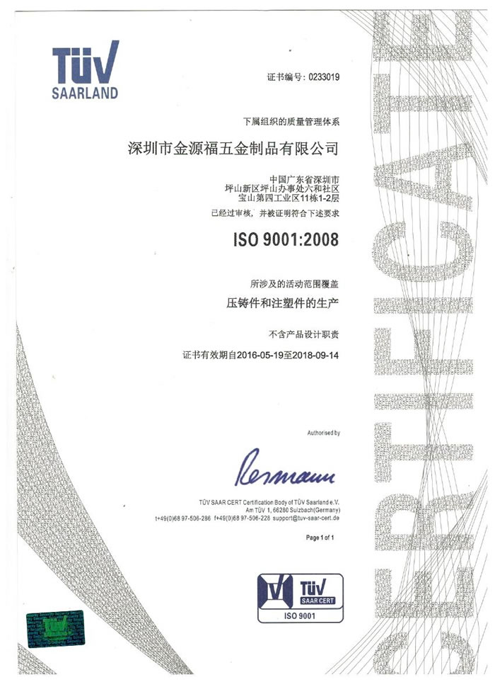 深圳市金源福五金制品有限公司成立于2003年。公司擁有8000多平方米生產(chǎn)廠地、開發(fā)與管理精英人才、技術(shù)專業(yè)、設(shè)備精良、交通便利、服務(wù)周全、具體設(shè)計、開發(fā)、制模、出樣、生產(chǎn)到成品出貨一體化模式生產(chǎn)廠家。已通過ISO9001:2008ISO1440/TS16949:2009國際質(zhì)量體系認證。專業(yè)生產(chǎn)鋅合金壓鑄、鋁合金壓鑄產(chǎn)品、汽車配件、汽車后視鏡支架、車載導(dǎo)航散熱器、LED散熱器、LED燈罩、數(shù)碼電子五金結(jié)構(gòu)件、家具五金裝飾件、標(biāo)牌(LOGO)等五金壓鑄產(chǎn)品。